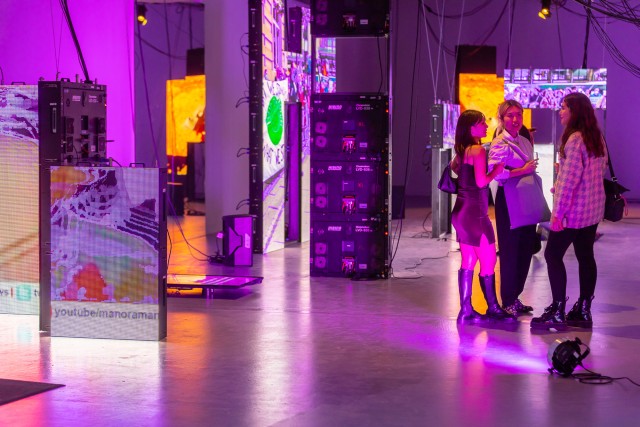 In LAWKI—NOW, a network of unsupervised algorithms curates from a large number of online videos. Through this compositional gesture, a new story of today is broadcasted, in which reality merges with the techno-imaginative. A specialized algorithm scrapes from streams of unlimited data to create its own ontology — based on visual stories that circulate, trend, and propagate across the web. In a multi-dimensional ‘random walk’ across this constructed world, global and local events are woven into a common narrative. As a stream of consciousness, the sequencing of search phrases indexically charts down our reality. Working with the architecture of the historic Der AA-Kerk in Groningen, the soundscape of LAWKI—NOW makes use of the 16th-century multi-particular polyphonic technique Cori spezzati (‘split choirs’). The space itself becomes an instrument through the layers of acoustic delays, creating a spatial stereo effect. The audio-visual narrative is divided into sequential chapters, which create non-linear points of entry and different outputs each time. The spatial installation invites the audience to move between, interact, and play with the screens to recalibrate how media environments are organized. In this walk of wonder, the viewer is not merely a consumer of the cacophonic spectacle but an active co-creator of both process and outcome.